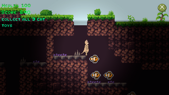 Deep within the wild, a lone cat wanders through caves, forests, and cliffs in search of three lost toys — the only remnants of a forgotten past. Each area brings new challenges, hidden paths, and silent dangers that test the cat’s instincts and will to survive.